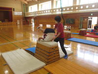 また、跳び箱ころがり(台上前転)でも身軽になったような気がしました。踏切が強くなり腰がよく上がっていました。
