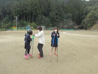 特に、2年生の上達ぶりには目をみはるものがあります。補助なしで乗り歩きができるようになり、高さもどんどん上げています。今日は、4年生こゆきさんもいっしょに、竹馬競走が行われていました。