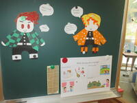 ベサニー先生から、子供達には手作り「鬼滅キャラクター」がプレゼントです。楽しそうに一生懸命作っているベサニー先生の姿が印象的でした。