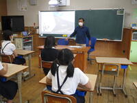 まず、宮川さんから、どのように米作りを行っているかを、スライドや動画でわかりやすく教えていただきました。その後、子供たちの「米作りでたいへんなことは何ですか」「米作りのやりがいは何ですか」などの質問にも答えてくださいました。