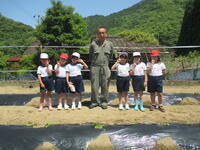 18日(水)、今年度も田上にお住まいの山﨑さんご夫婦にお世話になり、山﨑さんの畑で、1・2年生が芋植えを行いました。昨年度までは、芋掘りのみでしたが、今年度は、芋を植えることも体験させていただきました。