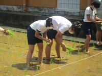 5年生は、総合的な学習の時間に、年間を通して「米づくり」を体験します。