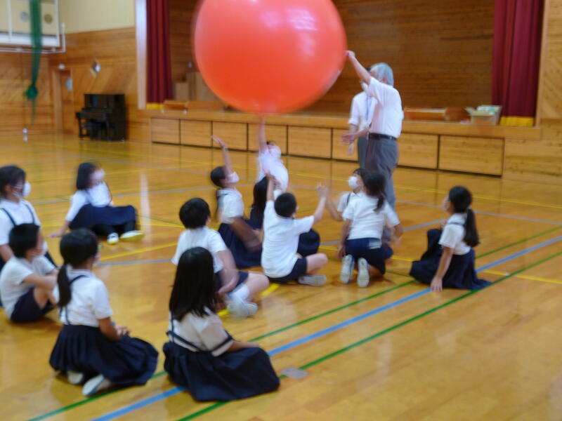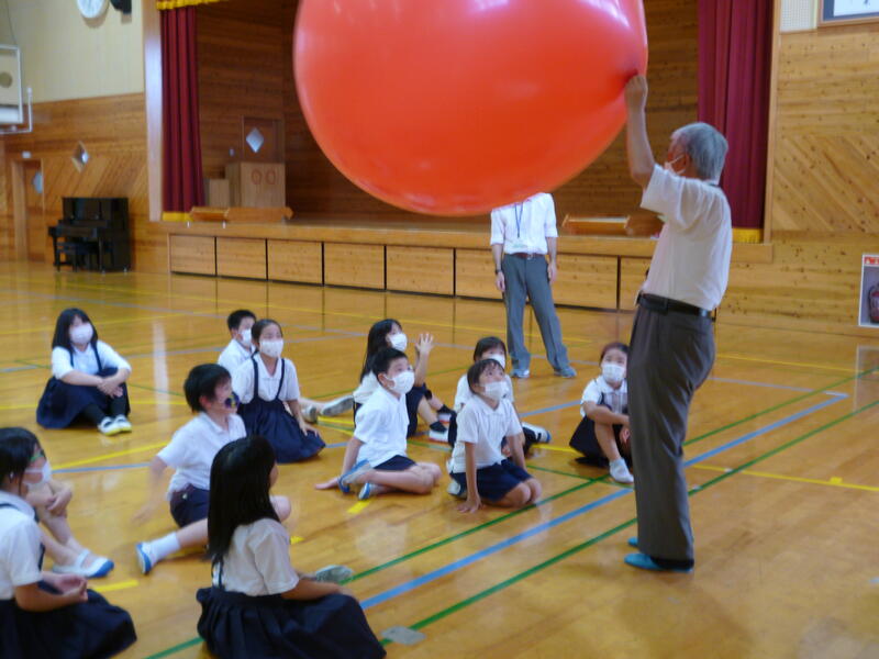空気の実験に大きな風船が登場し、何が始まるかみんなワクワクです。