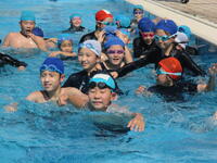 素晴らしい青空のもと、気持ちよく、元気いっぱいに初泳ぎを楽しみました。