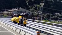 坂本橋を渡ると、町の復興のために暑い中、お仕事をしてくださっている方々の姿を見つけました。