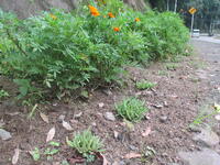 花壇やプランター、学校下の国道219号線沿いに植えました。