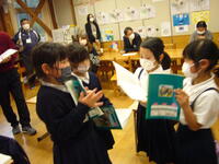 21日(火)に図書委員会による朝の読み聞かせがありました。この日のために、委員会活動の時間はもちろん、休み時間も練習を重ねてきました。