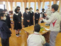 中学校の音楽の先生から、琴のことや指の使い方等の説明を受けると、早速「さくらさくら」の弾き方練習を始め、最後にはみんなで一斉に演奏しました。短時間の練習でしたが、上手に演奏できたことに子供たちも達成感を持つことができました。
