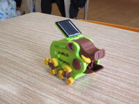 最後に、プレゼントしていただいた太陽光で動く「ロボシシ」を作成して、電気の不思議を堪能しました!