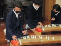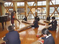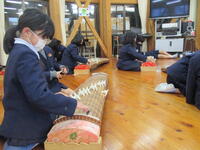 今週6日に6年生、7日に3・4年生と5年生が音楽の授業で坂本中学校音楽室で琴の学習を行いました。