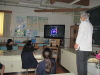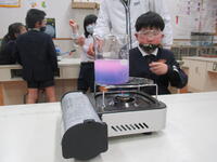 空気の温まり方の実験では気球内部の空気を暖めることで、気球が理科室の天井まであがり、子供達の歓声があがりました。