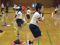 10日(金)に校内なわとび大会を実施しました。種目は、二つあり、一つ目は、30秒間跳びで、前跳び、後ろ跳び、あや跳び、交差跳び、二重跳び、選択種目を30秒間で、何回跳ぶかに挑戦しました。