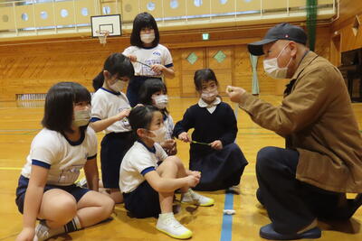 たくさんの昔遊びに出会うことができ、充実した時間となりました。遊んだおもちゃは、ご厚意で子どもたちにプレゼントしていただきました。学校には、木製の鳥をいただきましたので、玄関に飾りたいと思います。ありがとうございました。