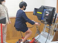 バーチャルな町の中を自転車に乗りながら、安全な自転車の乗り方やどんな危険が予想されるのかを考えていました。
