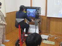2/28~3/2の期間に交通安全協会のご協力で自転車シミュレーターがやってきました。今回は、卒業する6年生が自転車の安全に乗れるようにシミュレーションを行いました。