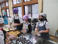 3,4年生と中学2年生が参加して郷土料理教室が坂本中学校家庭科室で行われました。