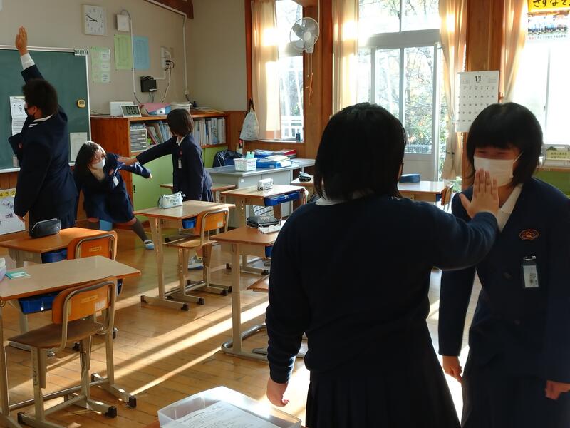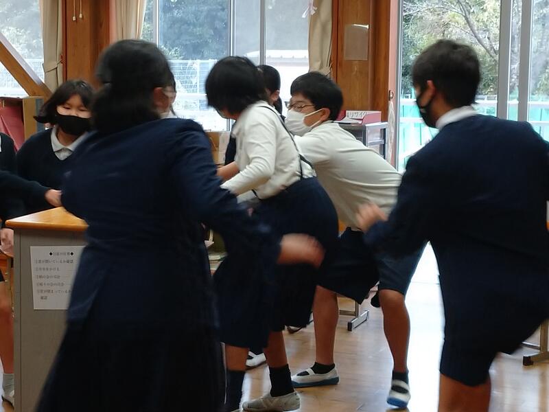 豪雨災害後から取り組んでいる「心のケアタイム」。毎月1回木曜日の朝10分程度、グループエンカウンターやリラクゼーションを実施しています。今日は、今年度最後のケアタイムでした。