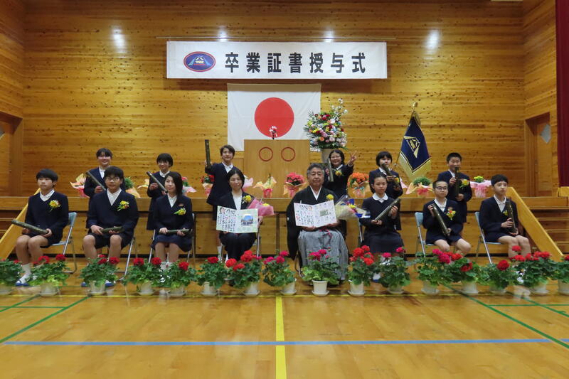 12名の卒業生が八竜小学校を巣立ち、いよいよ中学生です。八竜小学校での思い出を忘れず、元気でがんばってください。