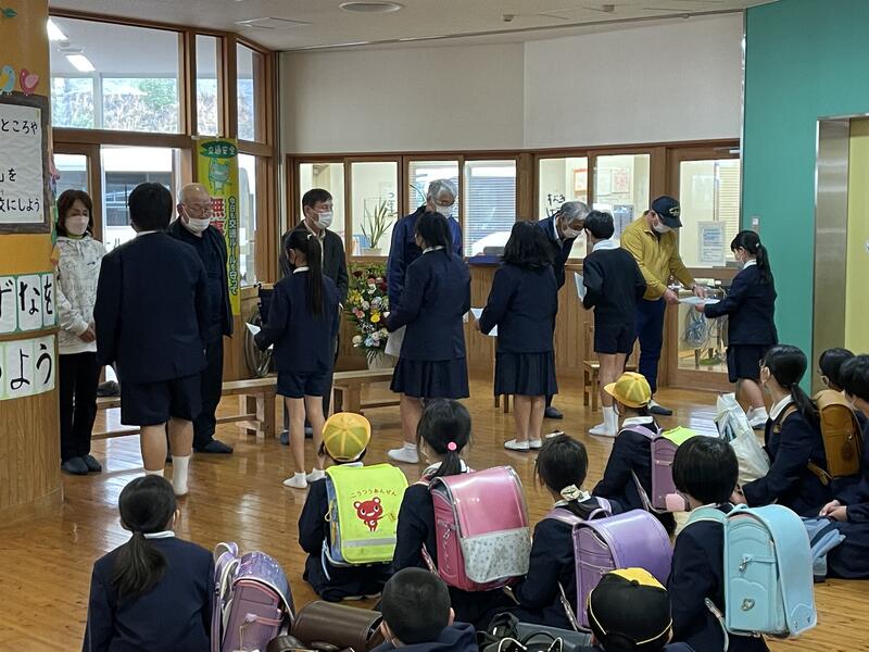 税に関する作品募集では、八代法人会の方々にお越しいただき、6年のかれんさんに賞状が渡されました。