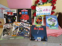 宇宙アサガオを育てている子どもたちのために、図書室前には宇宙に関連する本がズラリと並んでいます。思わず手にとって読みたくなります。
