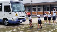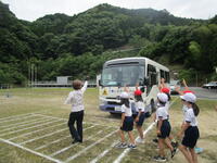 学校にバスが到着し、検温した順にランドセルを置いて、どんどん運動場へ走りに出てきます。