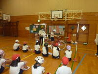 6月5日、交通安全教育指導員の方や警察の方、市役所の方、安全協会の方、バスの運転手さんに来ていただき、交通安全教室が行われました。
