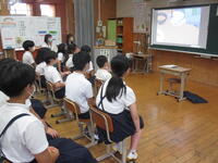 「星は明るさによって、一等星、二等星・・・と分けられますが、一番明るいのは何等星?」のクイズに、5・6年生は「一等星です」と、さすがの正解でした。「へぇ、そうなの?」と、4年生にとっては勉強になったようです。