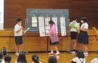図書環境委員が全校児童にとったアンケートをもとに、「このままでいいんでしょうか。」と呼びかけ、学校ISOの取組について発表しました。これから環境を意識して、私たちの身近な生活を見直していきたいですね。