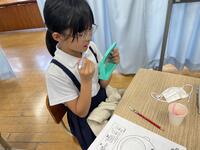 何をしているのか聞くと、「図工の学習で、風のとおり道を調べていました!」とのこと。