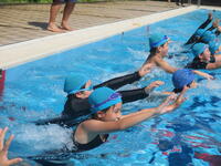 タイムではなく、距離の伸びを測りました。高学年になると、100m泳ぎ切る子も増えました。記録の伸びに関わらず、限られた水泳学習の時間の中で練習を頑張ったこと、自分のめあてに向かって精一杯泳いだこと、そして何より安全に泳ぐことができたことがよかったです。また来年の水泳学習を楽しみにしましょう。