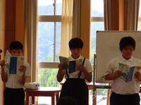 緊張していたと思いますが、全員で声を合わせ、スラスラと音読していました。練習を開始したのは、先週のことだそうです。2学期が始まり慌ただしい中、短い練習期間でよくがんばりました!