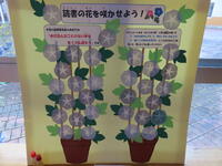 アサガオの紙に、初めて読んだ本のおもしろかったところや初めて知ったことなどの感想を書いて、図書室前のボードに貼っていきます。