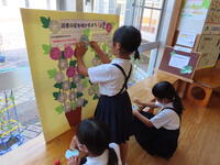 児童が考えたこのめあてを受けて、図書館司書の早木先生から、「読書の花を咲かせよう!」の取組を提案していただきました。