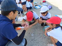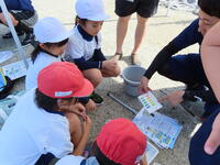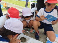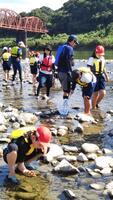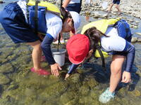 班ごとに、球磨川にはどんな水生生物がいるのか調査を行いました。