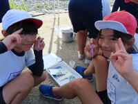 お見送りのあと、2・3・4年生は球磨川の遙拝八の字広場へ行き、水質調査を行いました。