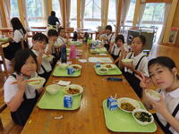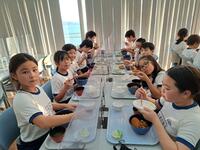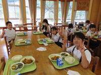 今日の給食は、人数が少ない中でしたが、みんなでおいしく食べました♪