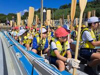 最初はなかなか息が合わず進みませんでしたが、漕ぎ進めるうちに、声も揃い、ぐんぐん前に進んでいました!