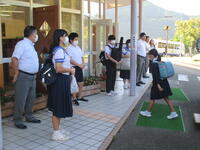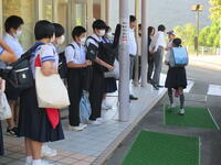 10月に入っての第1週目のため、今週は、小中合同のあいさつ運動を行いました。小学生、中学生、そして先生方は、バスから降りてくる子供たちに大きな声で、あいさつを交わしていました。