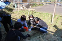 今日の午後、種作りからお世話になっている宮川さん親子に来校していただき、5・6年生のお米の脱穀が行われました。
