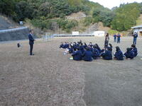 非常ベルと放送を聞き、校舎から離れた運動場に避難しました。ハンカチで口と鼻を覆い、素早い行動ができました。