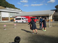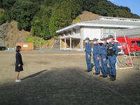 その後、6年生による水消火器による消火器体験の後、お礼の言葉を述べて訓練を終えました。