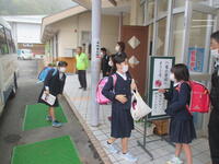 小学校は、体育・保健委員会が先頭に立ち、あいさつを行いました。また、地域からも民生委員会長の森さんが来校され、いっしょにあいさつ運動に加わっていただきました。とてもありがたかったです。