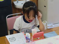 5月に行われた歯科検診の結果をもとに、養護教諭の坂田先生から、一人一人に合わせた歯磨き指導のシートをいただき、歯磨きの仕方を確認しました。