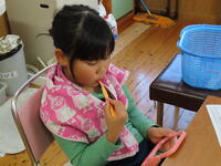 きちんと磨けておらず、汚れがのこったままの所を確認し、上手な歯ブラシの動かし方を教わりました。