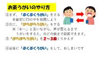 お茶うがいのやり方については、給食の時間に子どもたちへお知らせした他、先日配付した保健だよりにも掲載しています。
