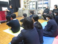 生徒指導担当からは、生活面・安全面についての話がありました。SNSやゲーム等で知り合った人には絶対に会わないことや、冬休み中に持ち帰るタブレットの使い方等について話をされました。