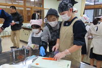 坂本地域の食材・食文化について地域の方に教えていただきながらの実習です。