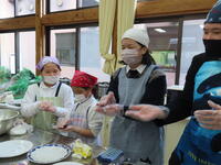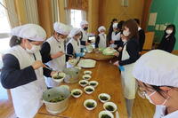 今日は、2年生が坂本中学校へ行き、中学2年生のみなさんと一緒に郷土料理教室を体験しました。