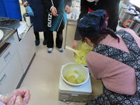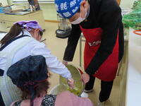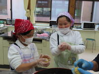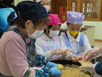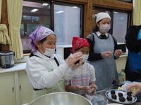 地域のみなさんや中学生を見本にしながら、上手にあんこを丸めていました。中学生も優しく接してくれて、仲良く作業を進めていました。