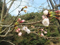 今朝、何気なく運動場を歩いていると、な・な・なんと桜が咲いているではありませんか。運動場南側のバックネットの裏の1本の桜の木に桜の花がちらほらと見られました。